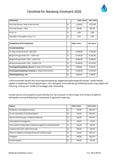 Takstblad For Næsborg Vandværk 2026