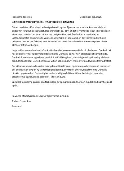 Pressemeddelelse Løgstør fjernvarme