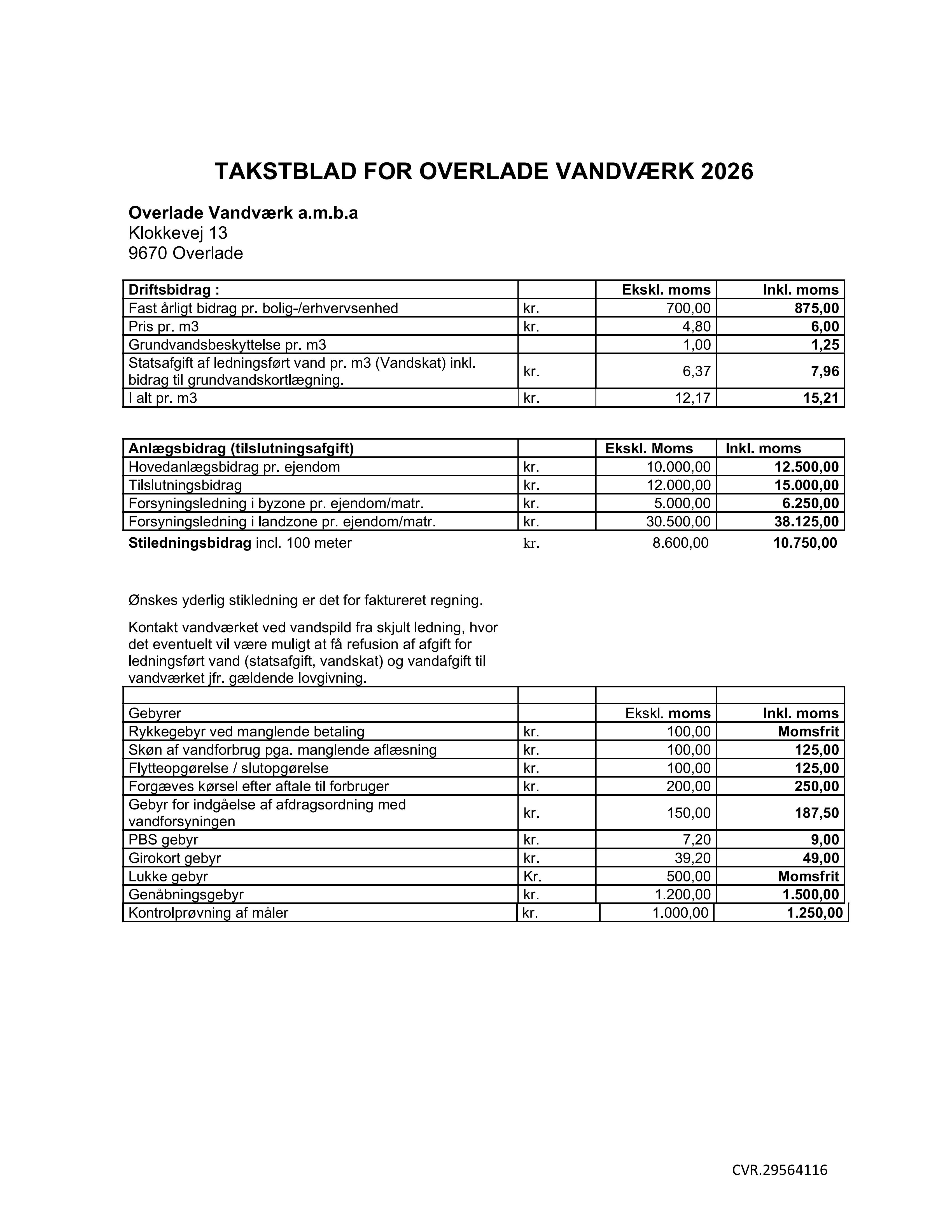 Takstblad For Overlade Vandværk 2026